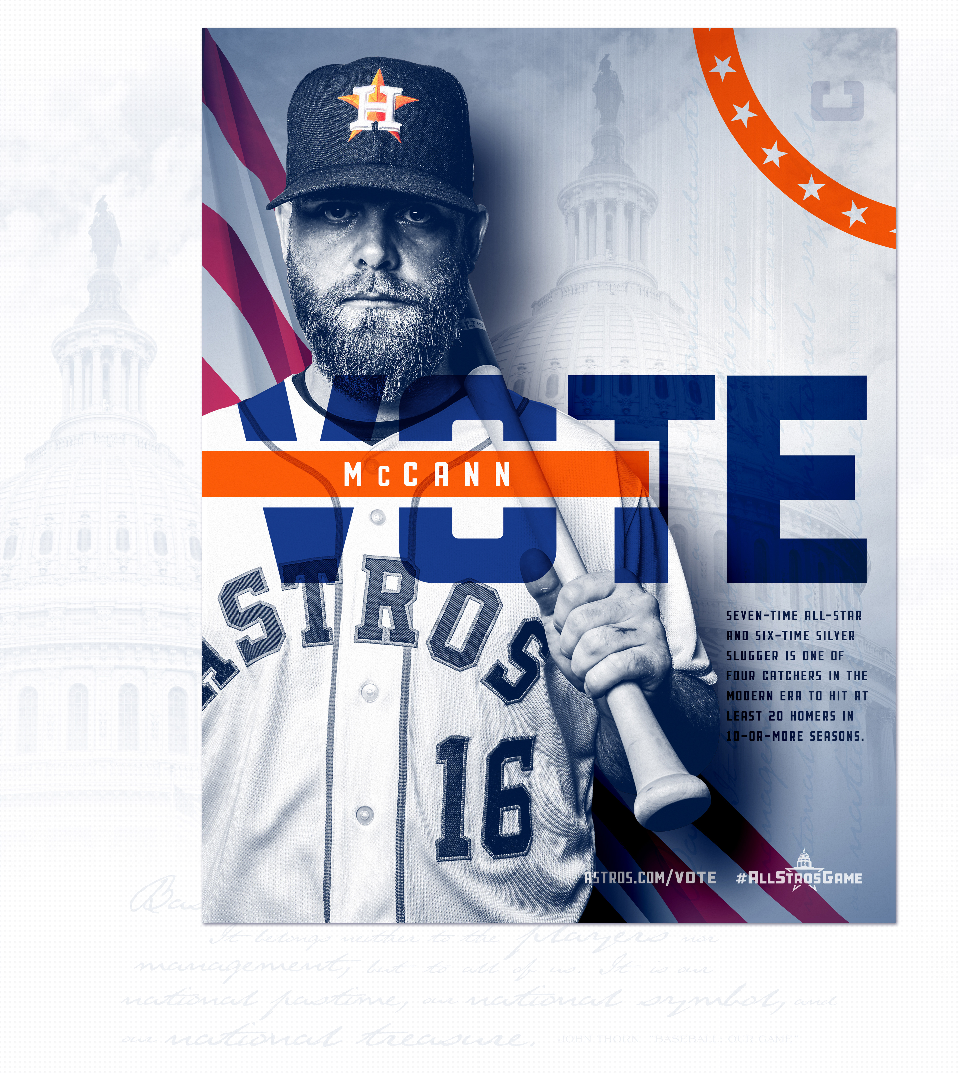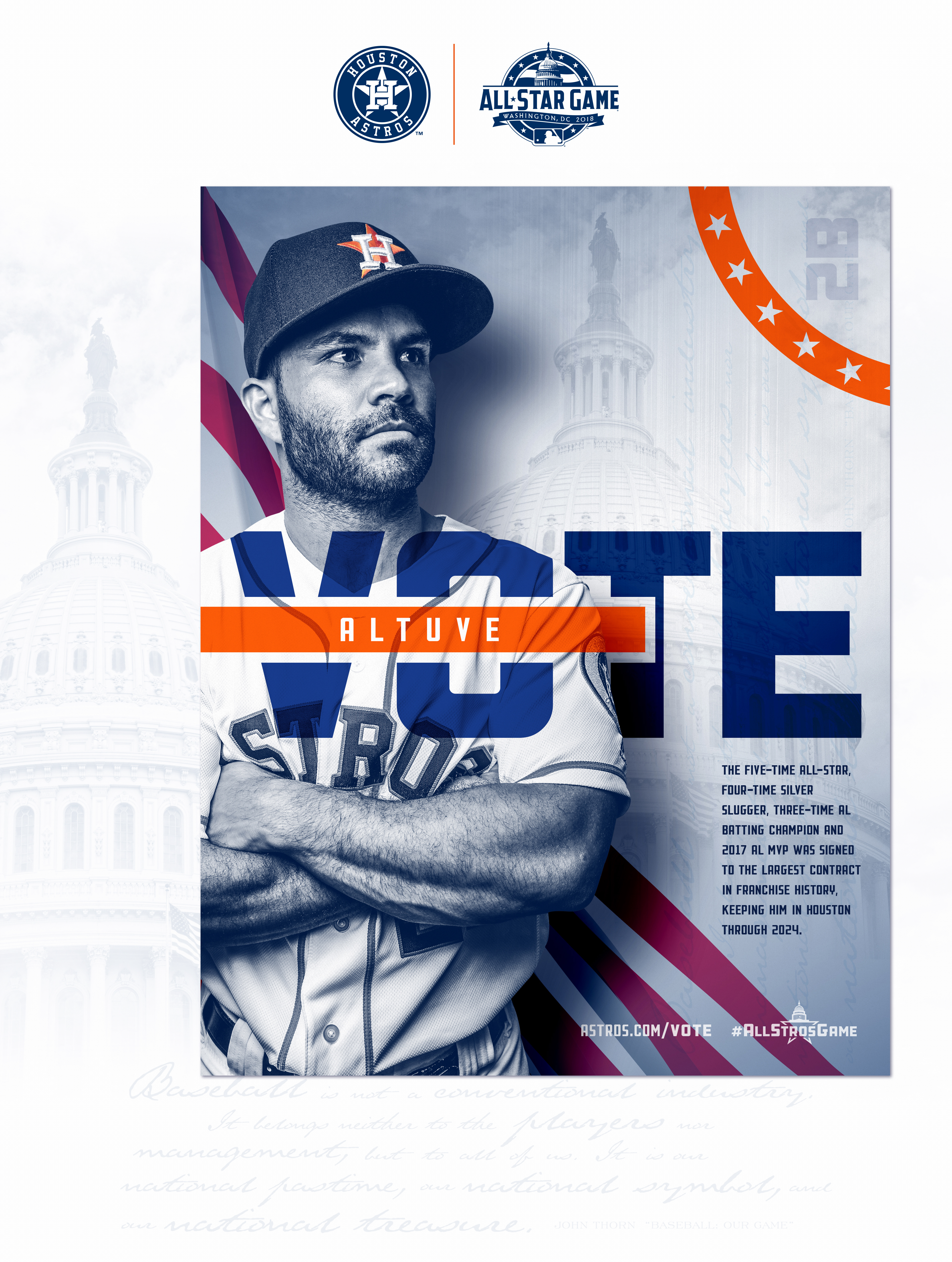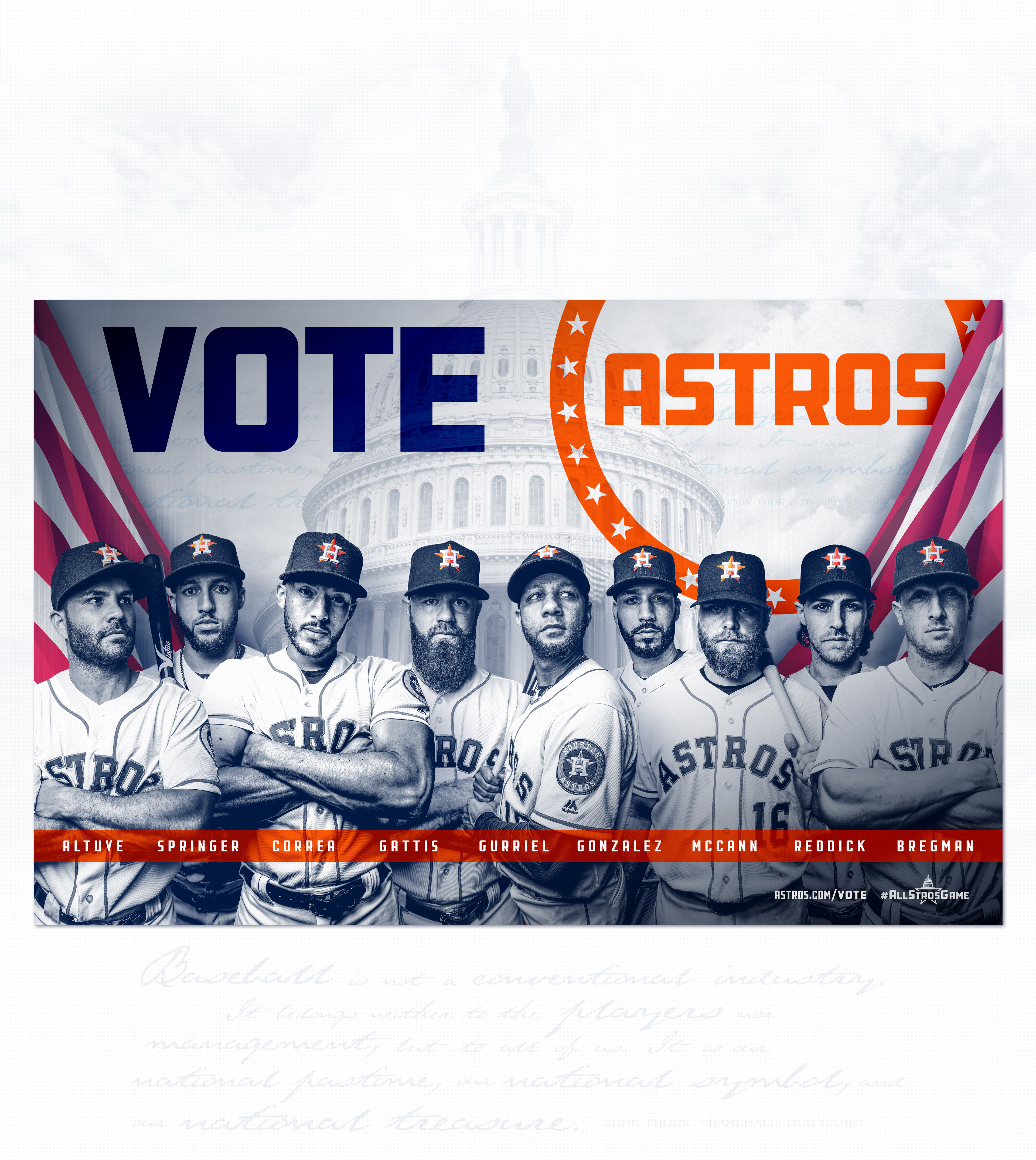 Creation of the 2018 All-Star Game Campaign for the Houston Astros. This campaign will be present on Social Media and around the ballpark to promote their players to send them to Washington DC for the All-Star Game.