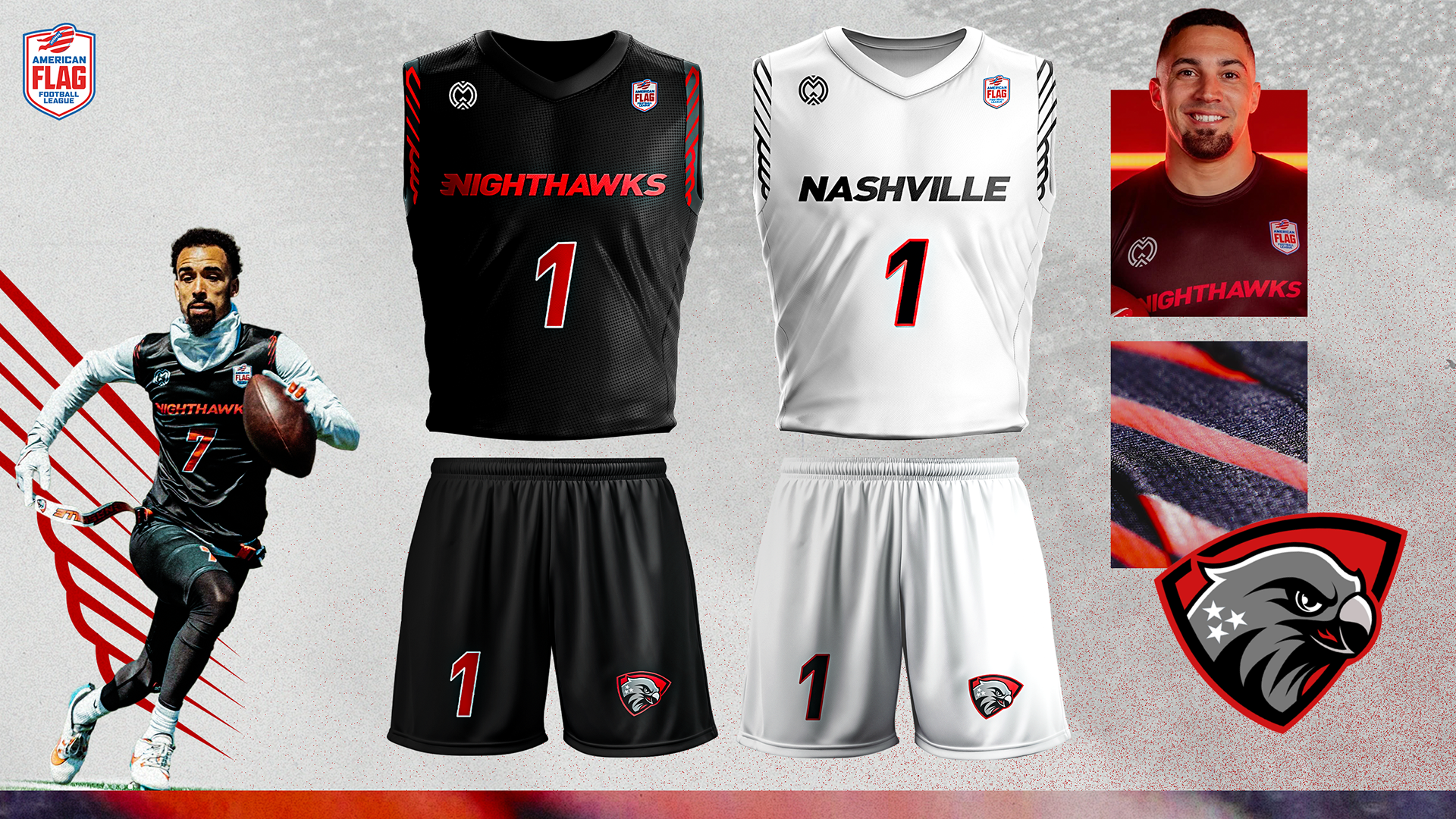 I was asked to help design the uniforms for the four American Flag Football League (AFFL) teams. The teams were the Las Vegas Lucky Sevens, Dallas Ocelots, Nashville Nighthawks, and Boston Brigade. These are currently being worn in the league today.