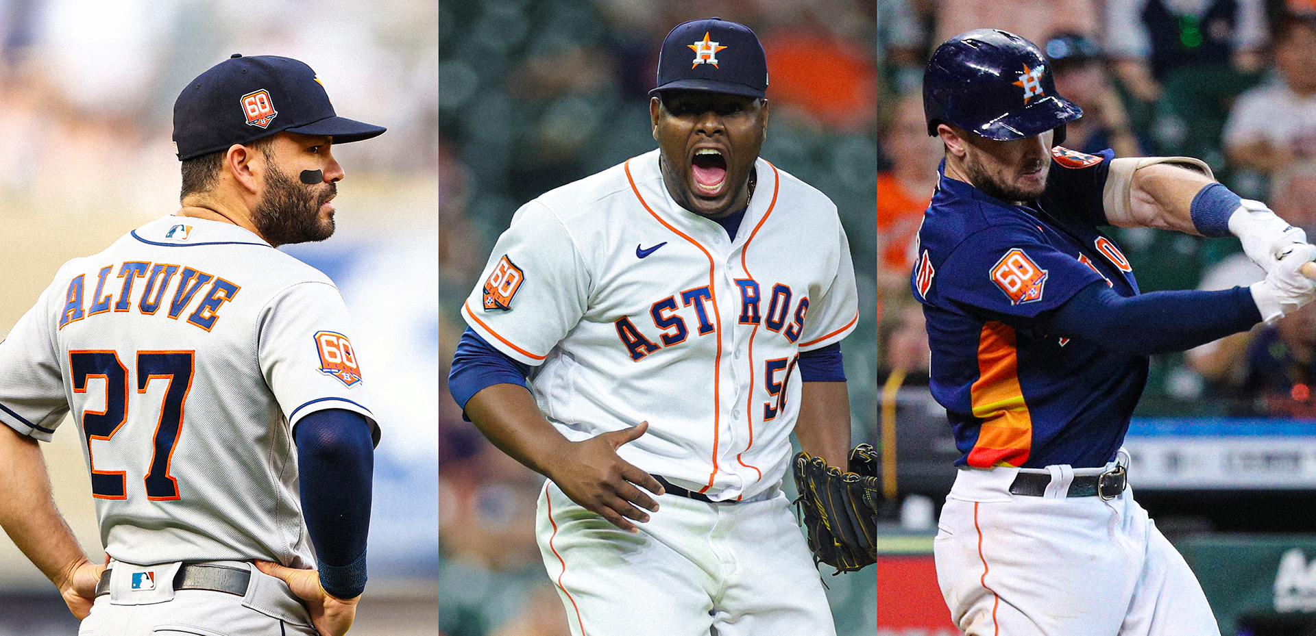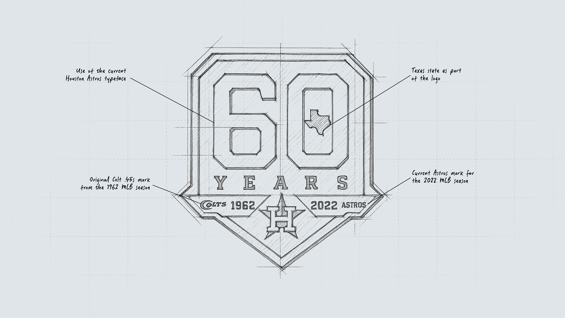 Astros 60th Anniversary patch designed and worn throughout the 2022 MLB regular season. The commemorative patch was featured on the Astros caps as well as uniform sleeve.