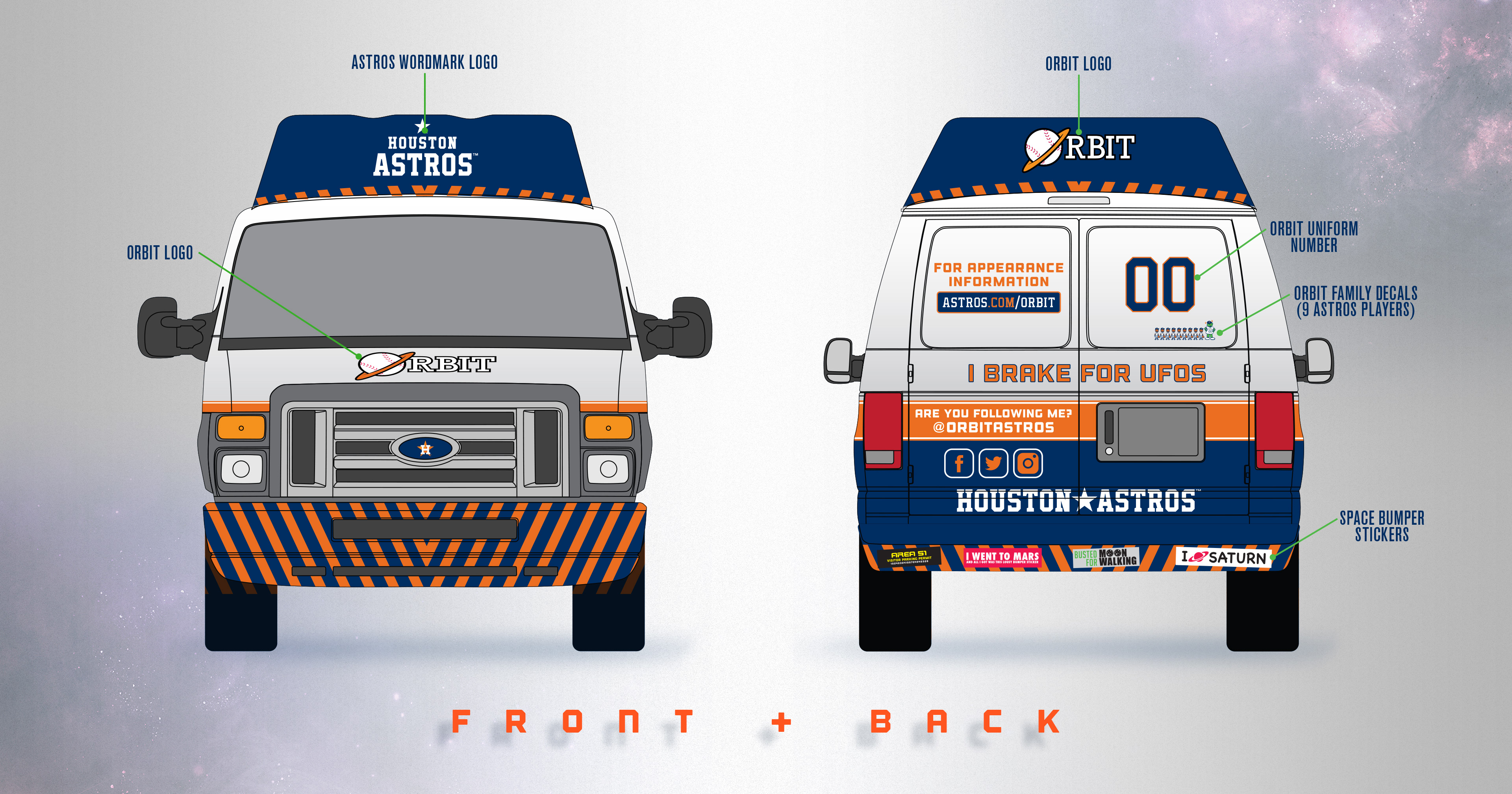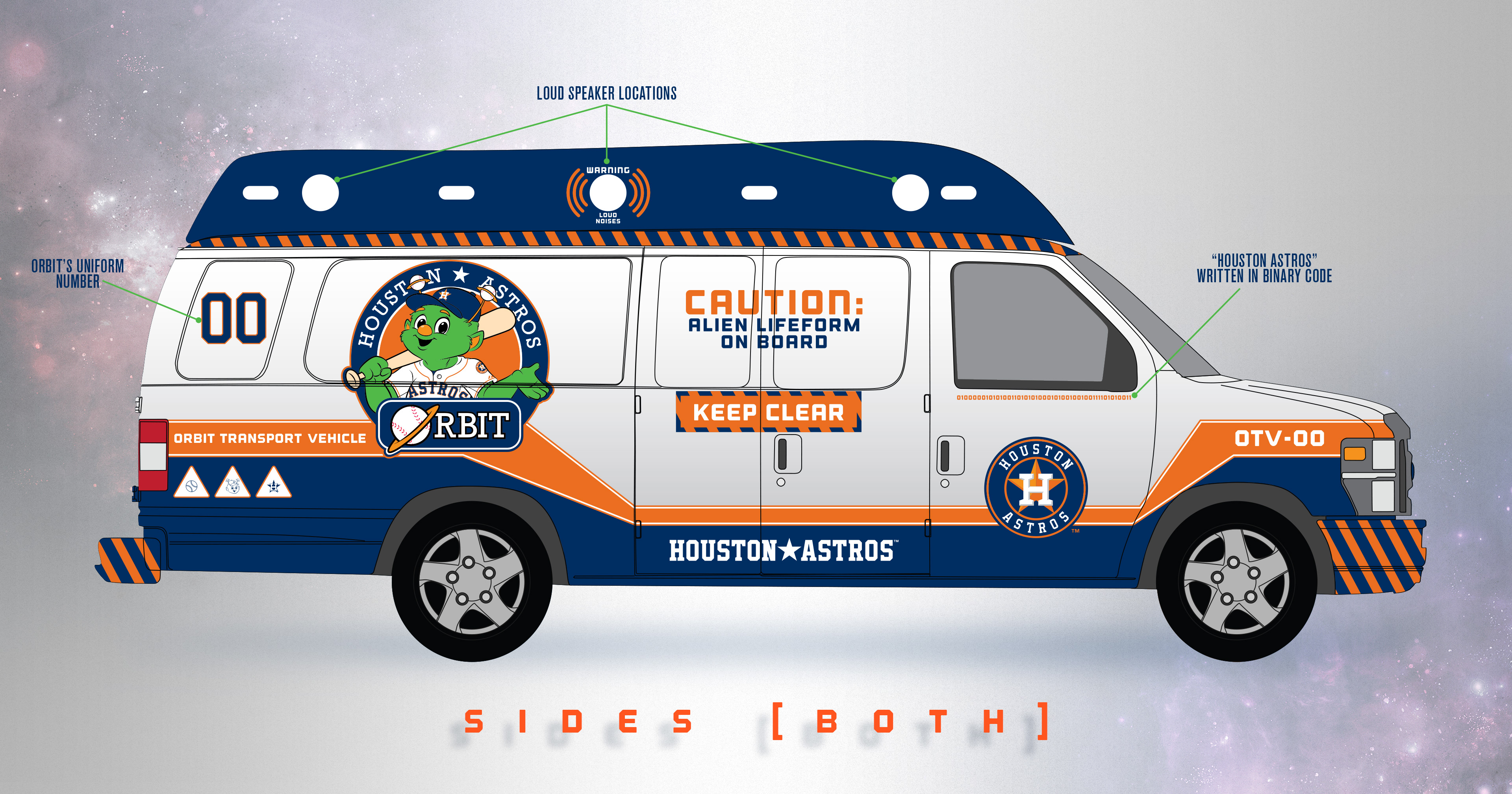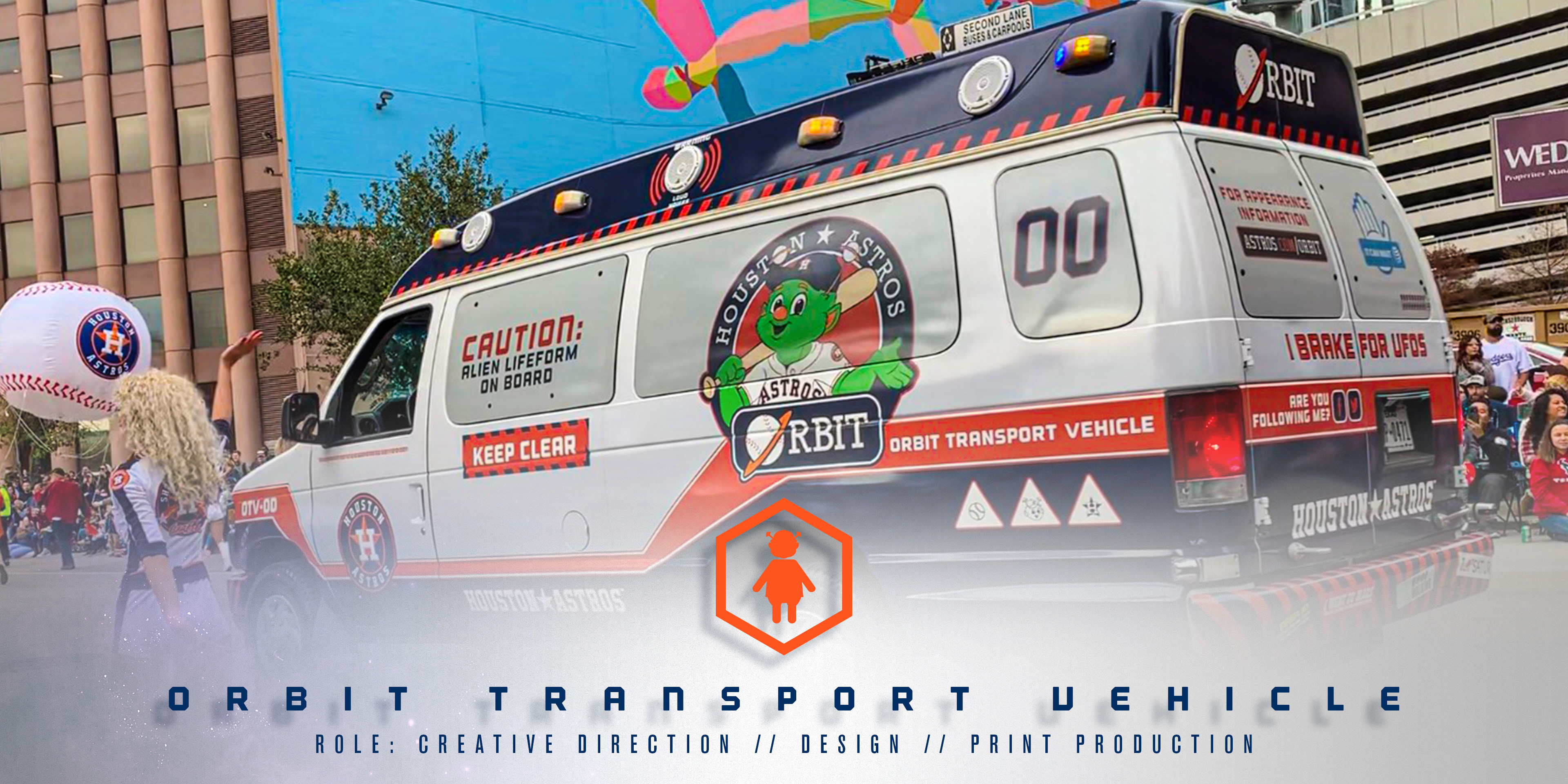 A vehicle wrap for Orbit (the official mascot of the Houston Astros). The idea was to create a vehicle in the same vein as a hazmat vehicle or emergency transport vehicle, while still keeping a fun, quirky look.
