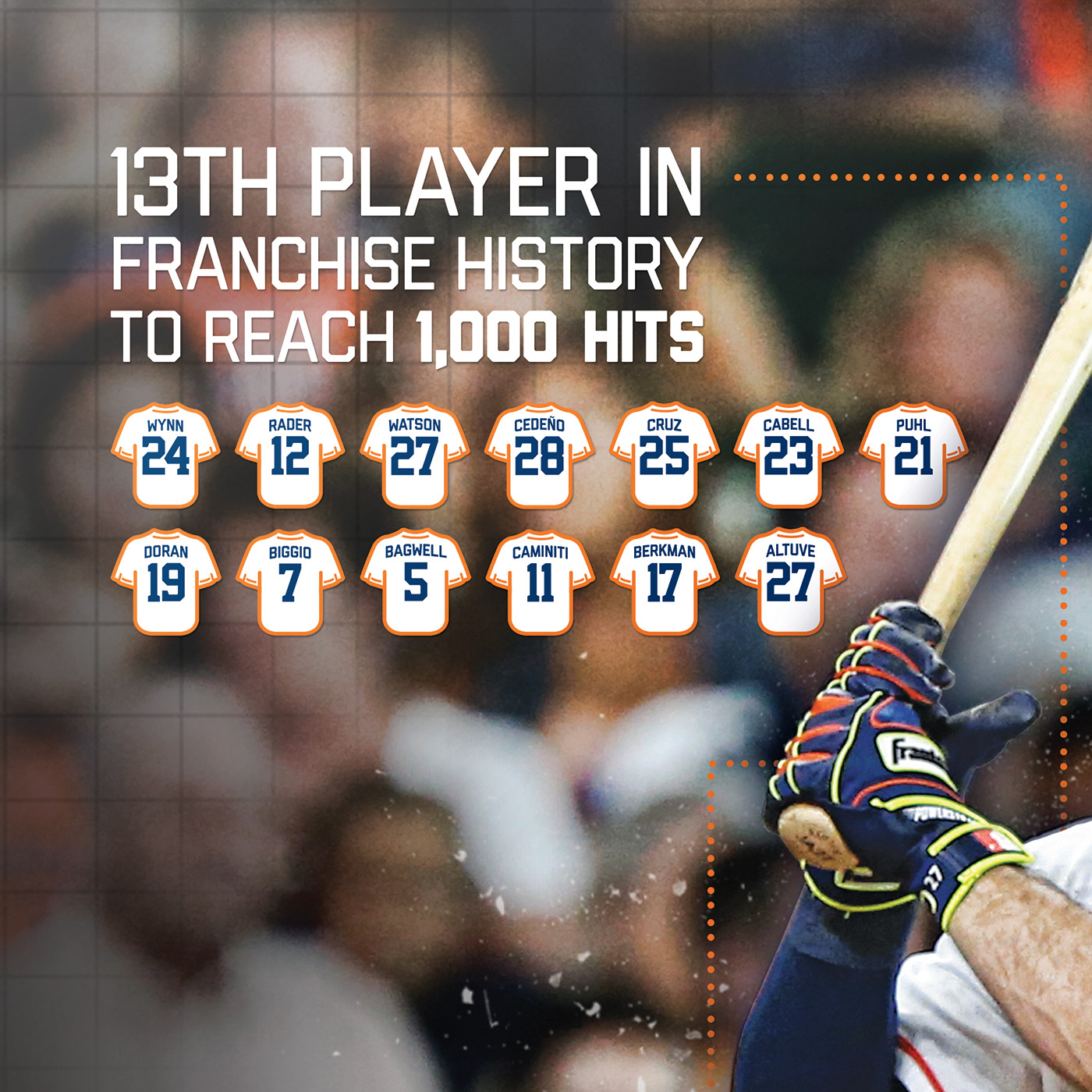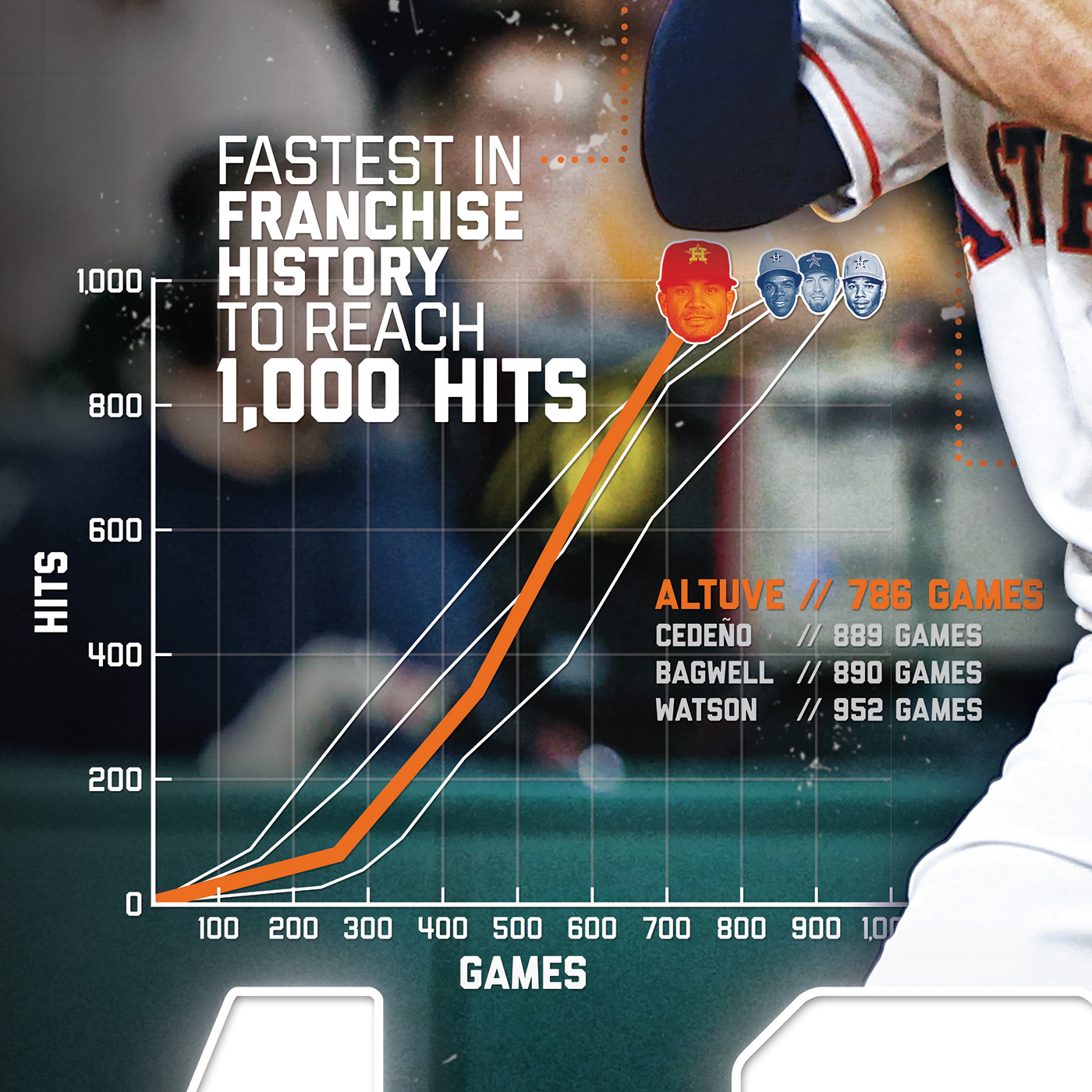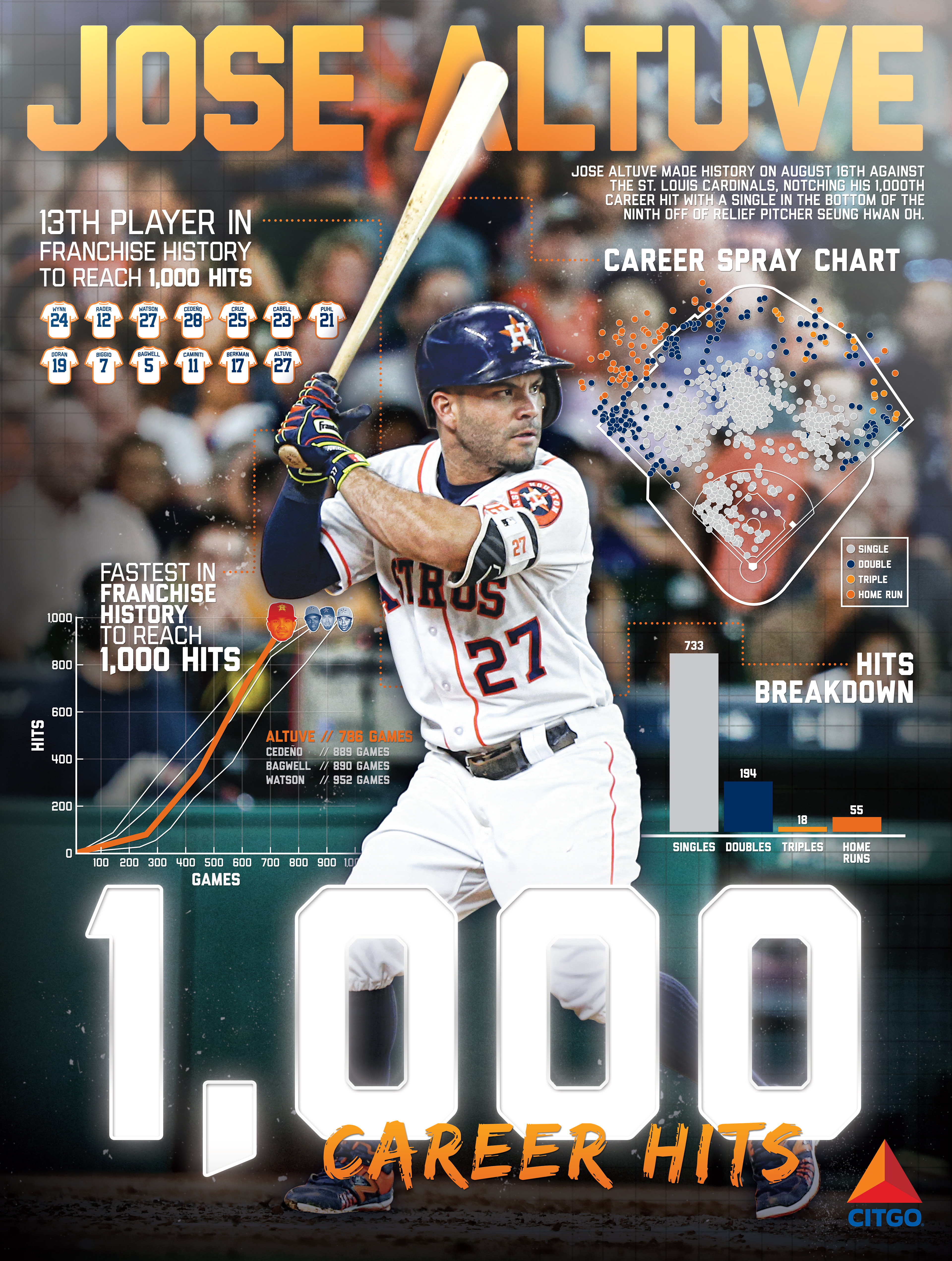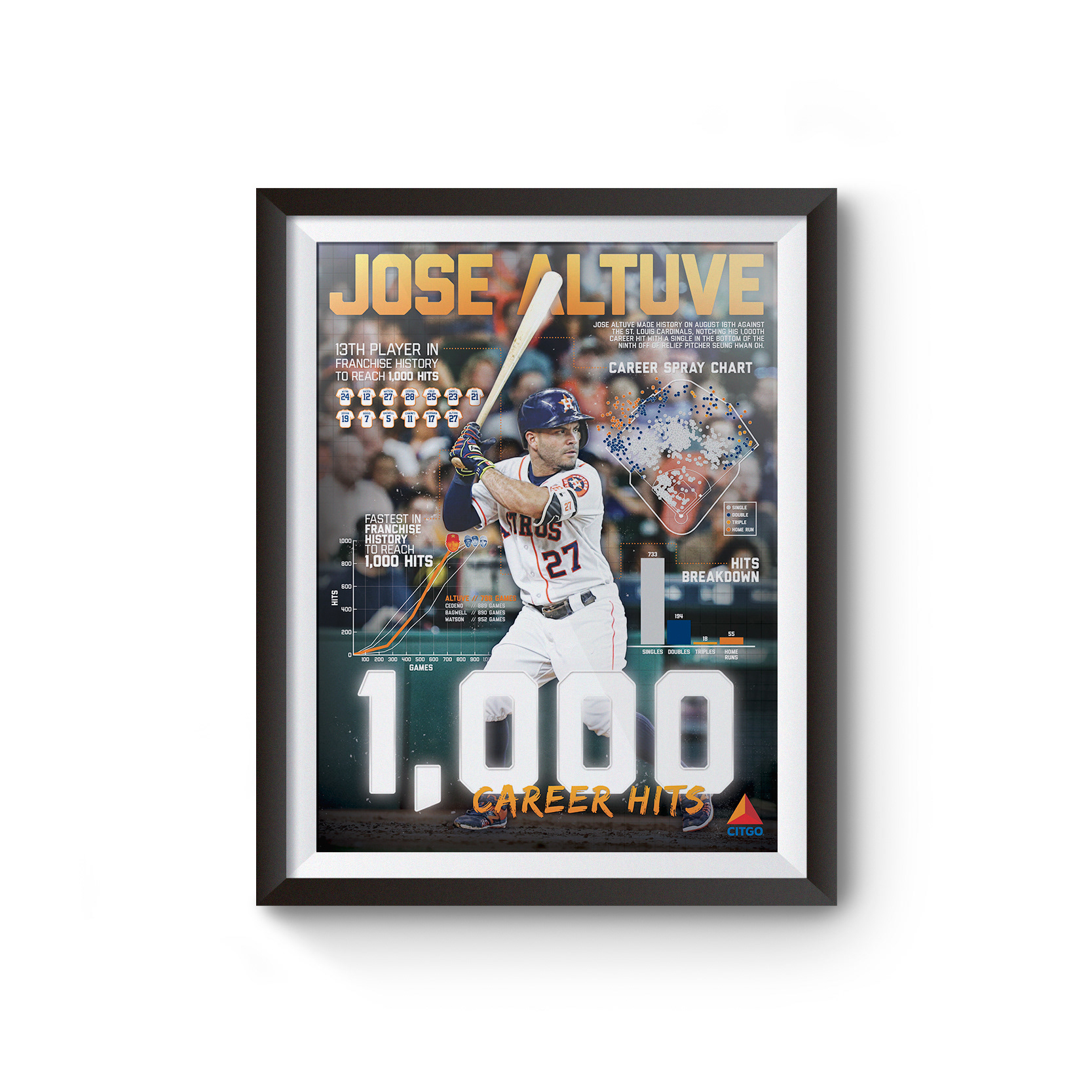 Fan giveaway poster infographic for Jose Altuve’s 1000th hit.