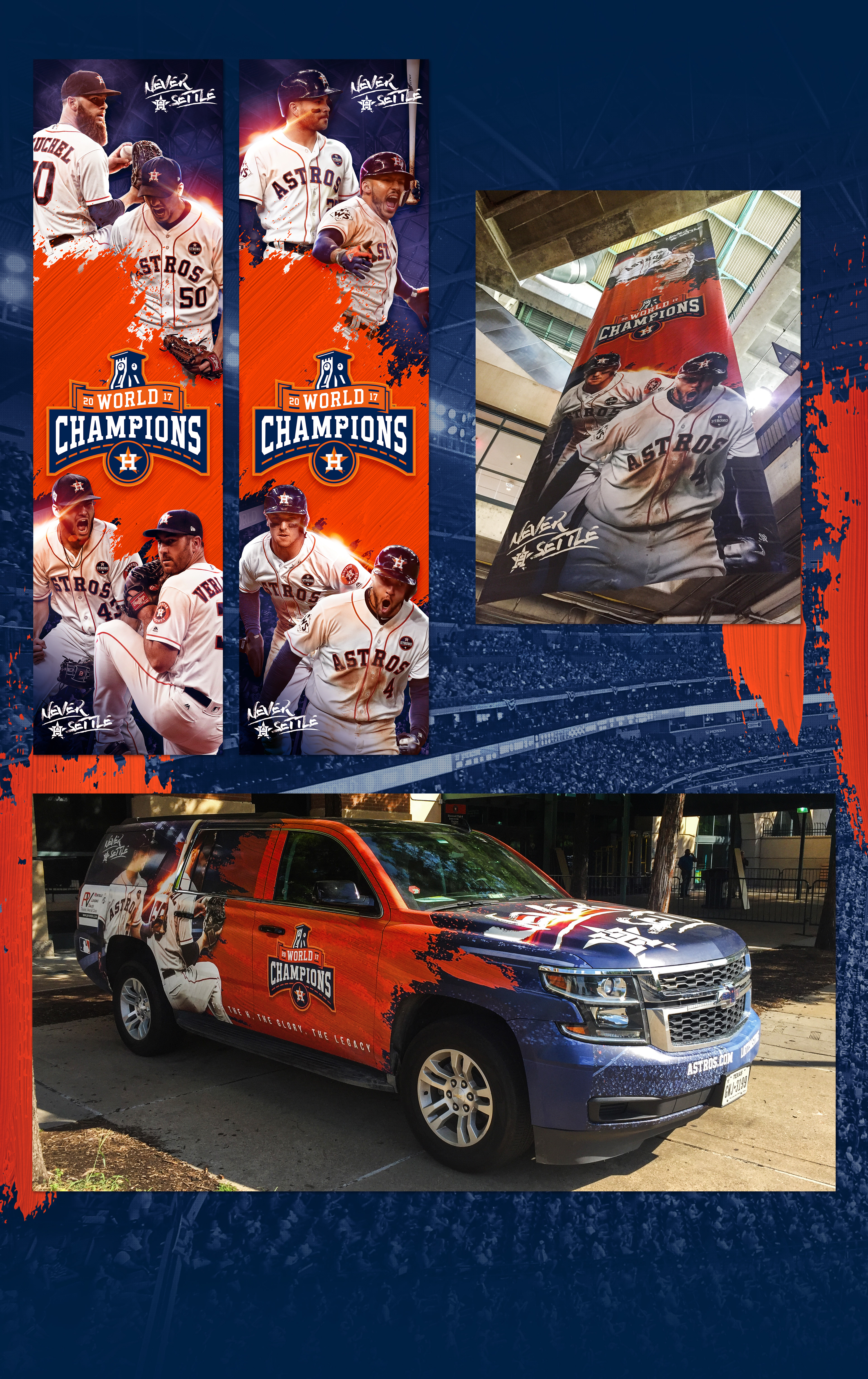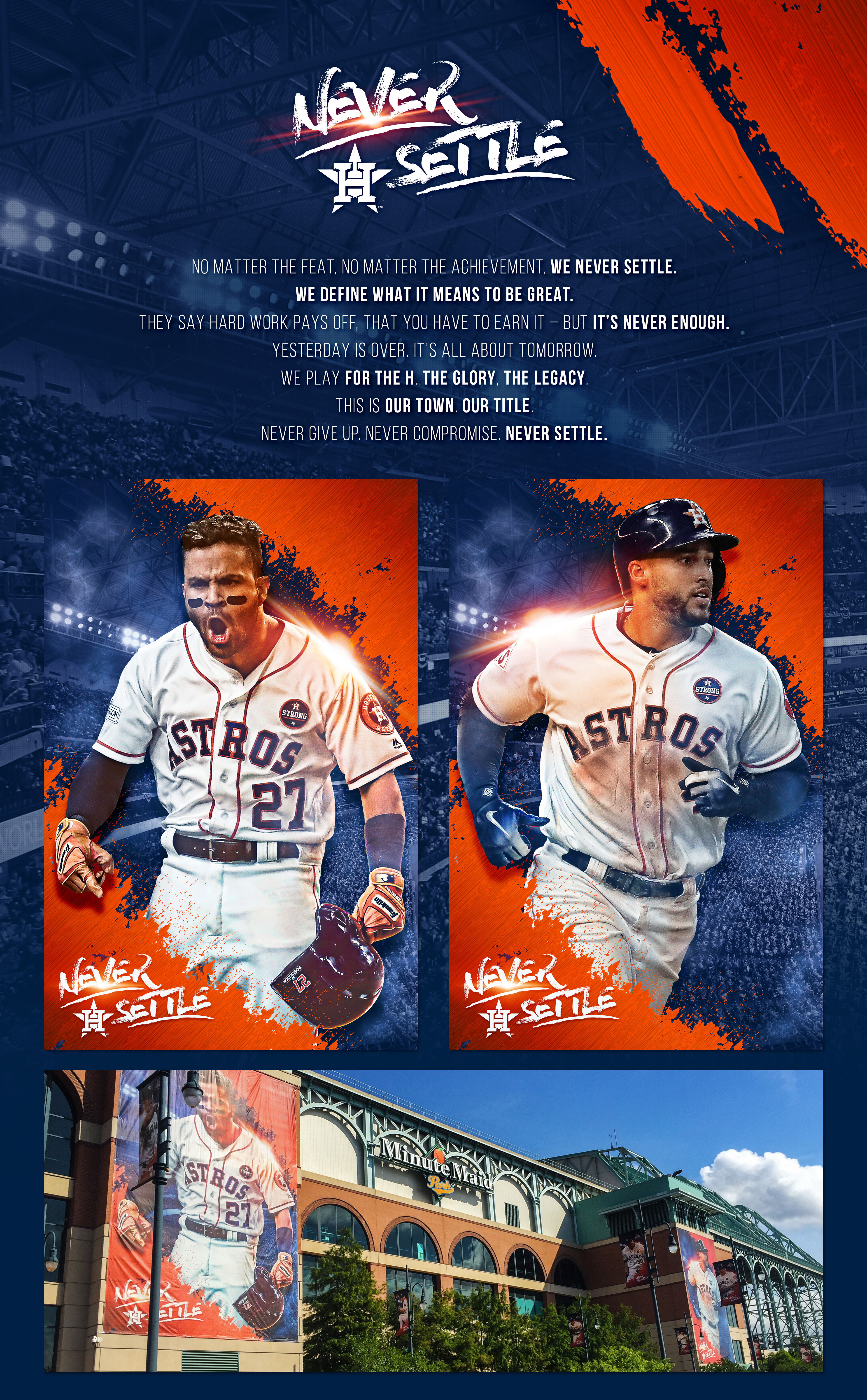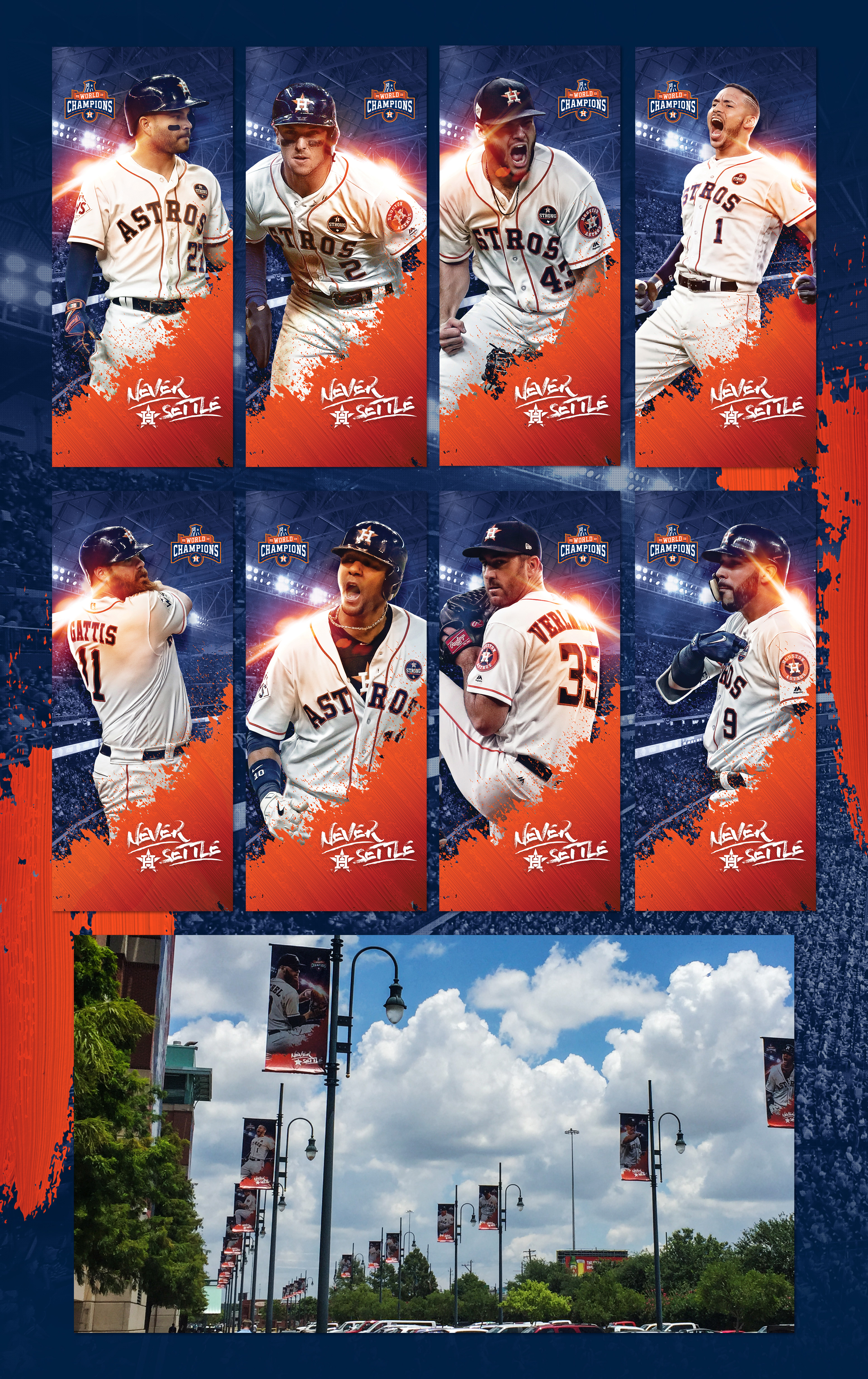 The 2018 regular season campaign for the World Champion Houston Astros. This campaign consisted of Stadium Signage, Web Design, Office Branding, Printed Collateral, TV spots, etc.