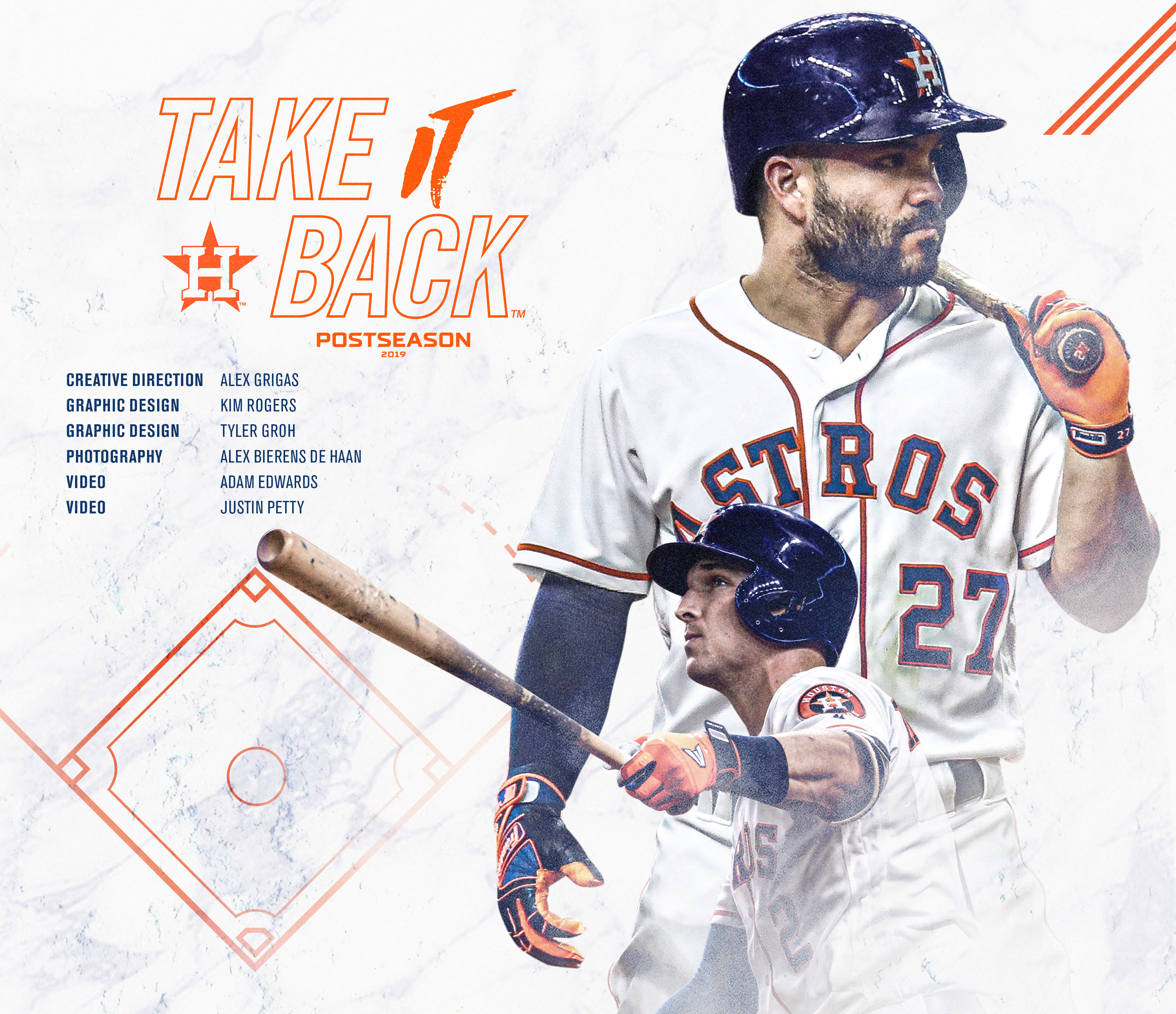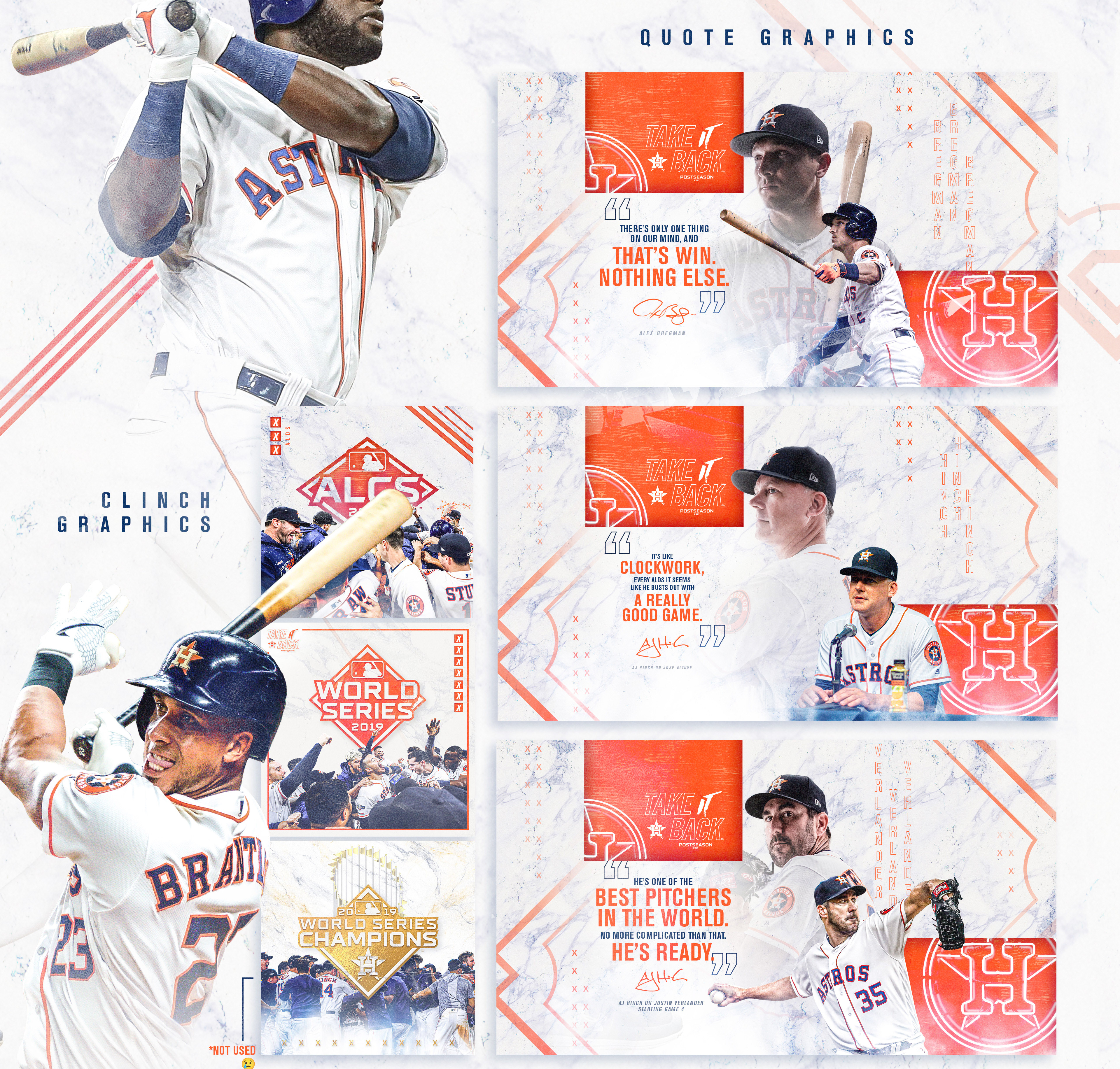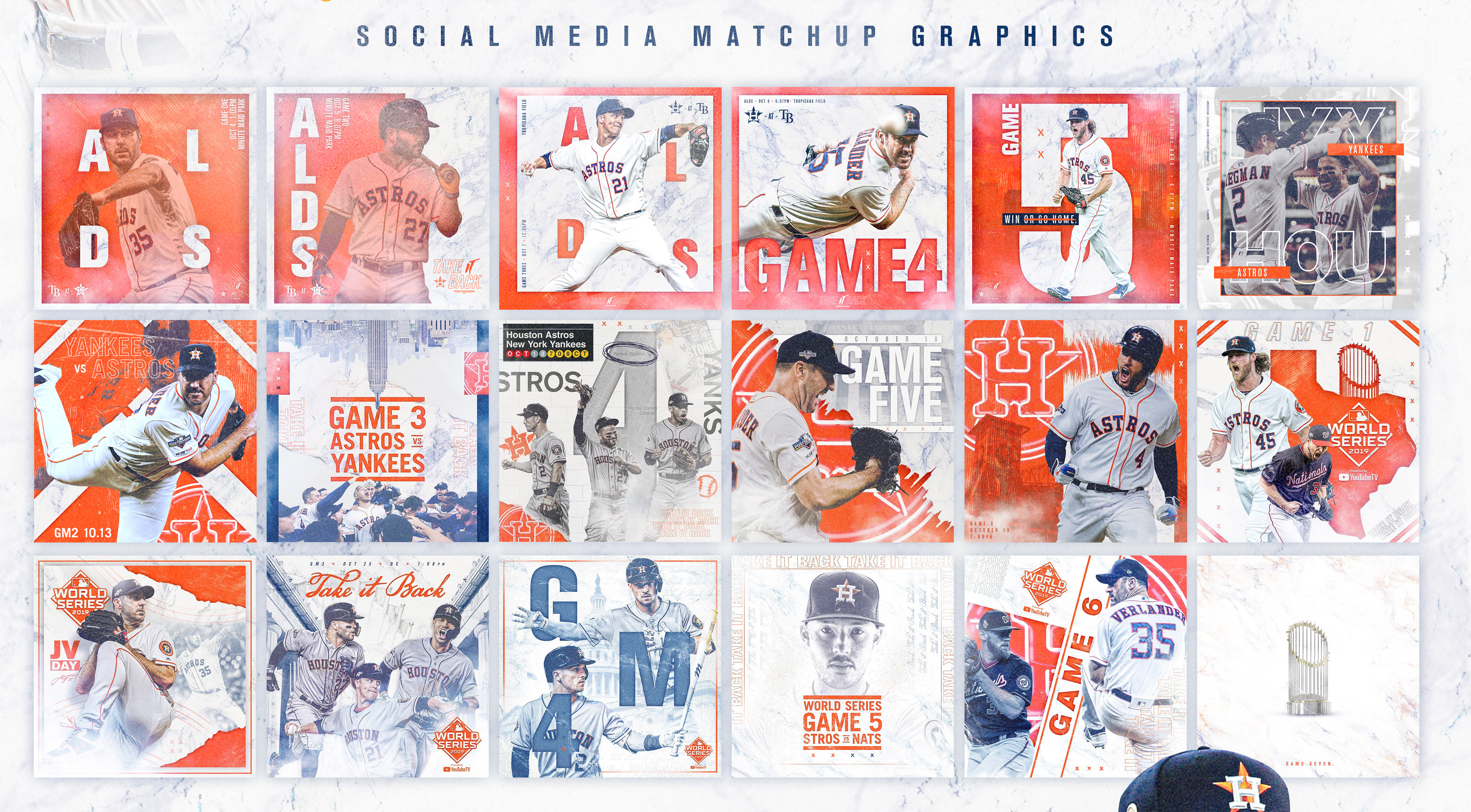 The 2019 Houston Astros Postseason Campaign. This campaign consisted of Stadium Signage, Web Design, Office Branding, Printed Collateral, TV spots, etc. during the 2019 MLB Postseason run to the World Series.